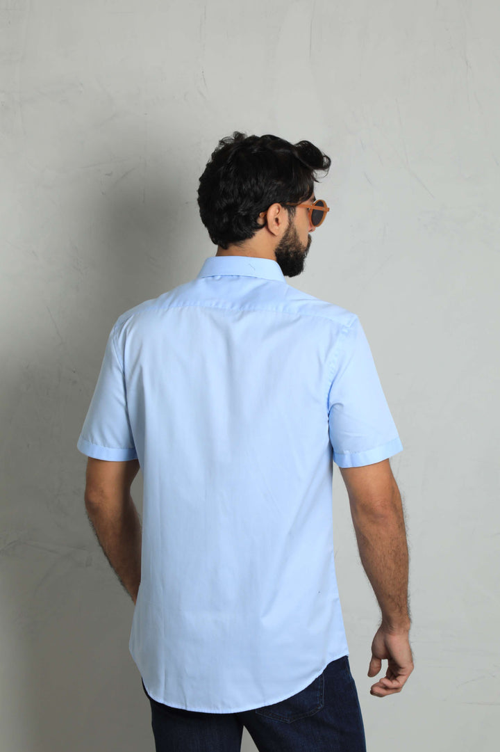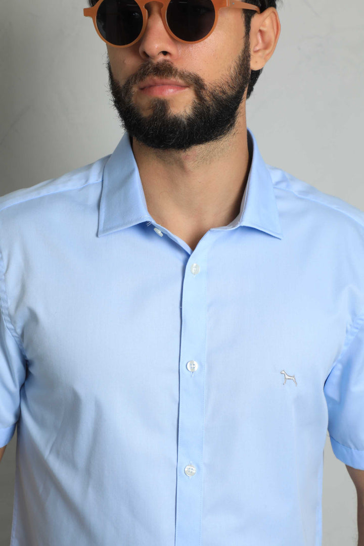 Dale a tu look un toque de distinción con esta camisa de manga corta con acabado satinado, ideal para destacar con estilo. Su tejido en mezcla de algodón logra un balance perfecto entre suavidad, frescura y caída ligera.