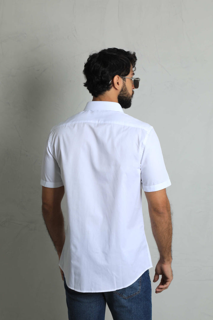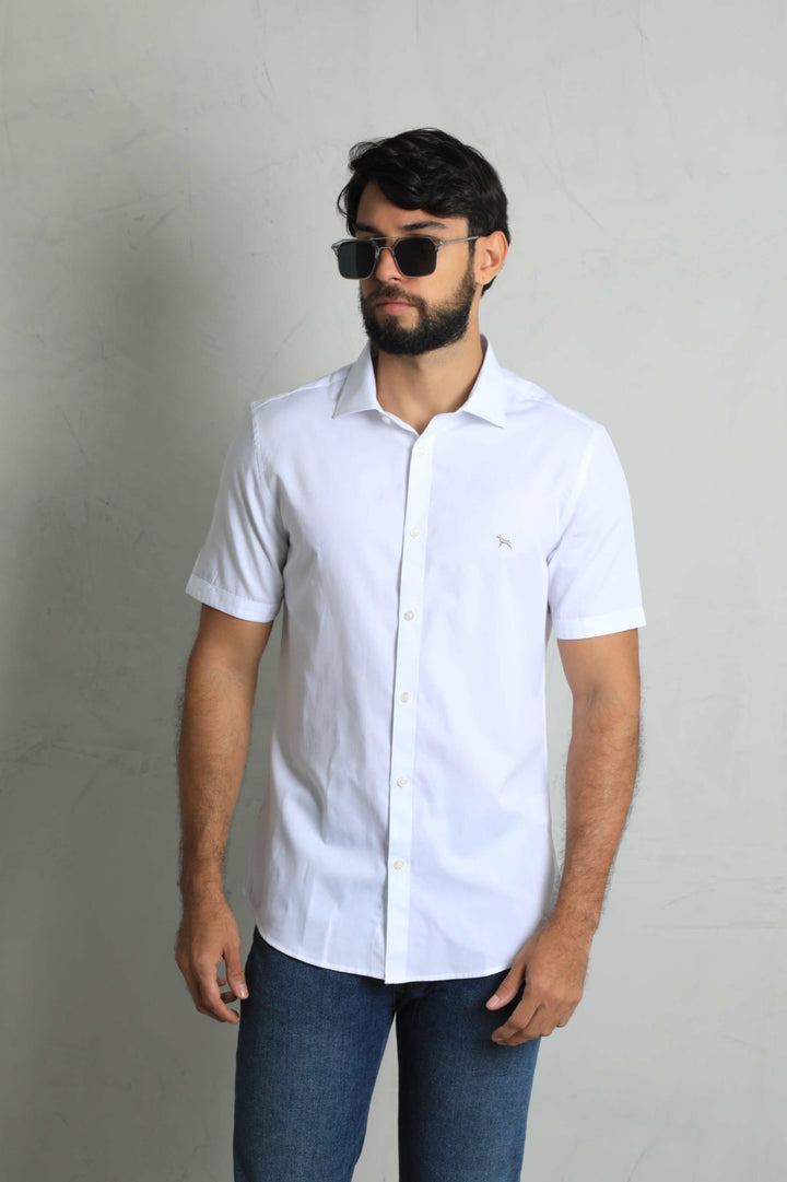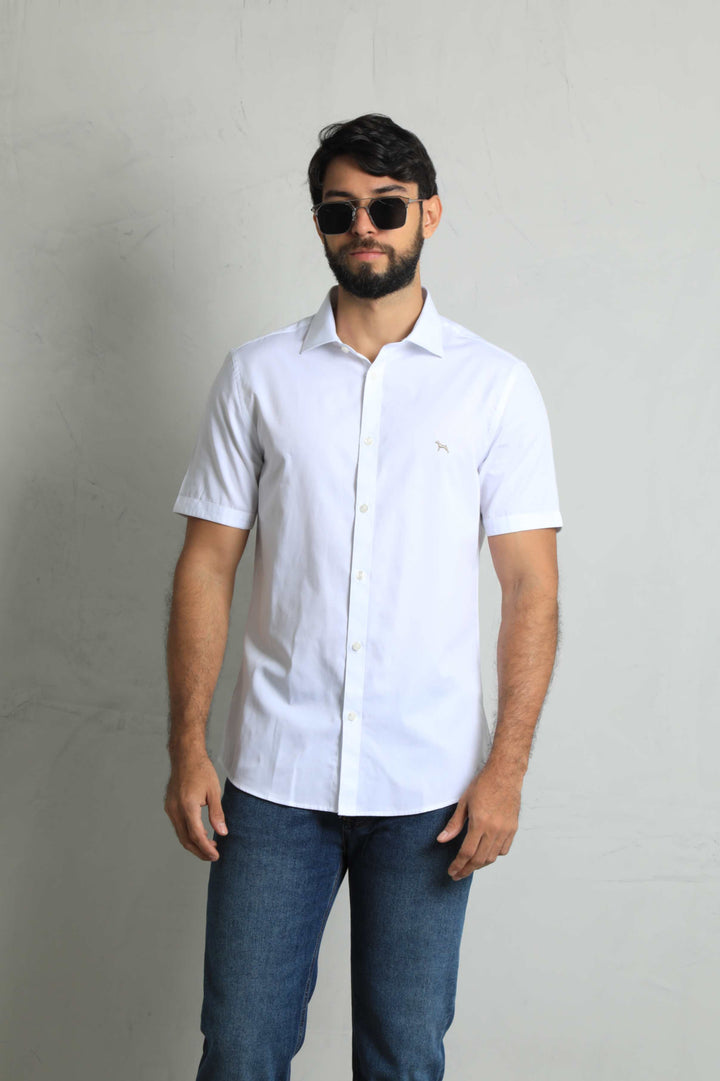 Dale a tu look un toque de distinción con esta camisa de manga corta con acabado satinado, ideal para destacar con estilo. Su tejido en mezcla de algodón logra un balance perfecto entre suavidad, frescura y caída ligera.