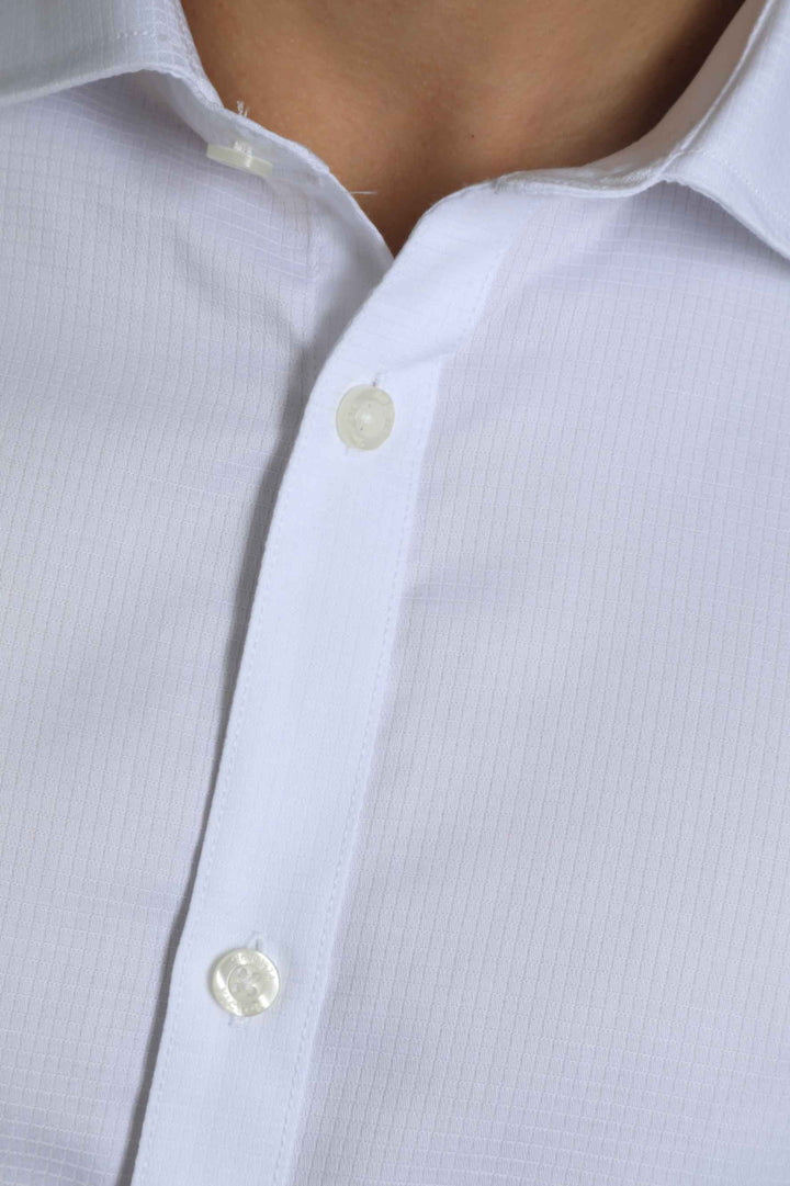 La clásica camisa blanca se renueva con un giro sutil y elegante. Confeccionada en tejido dobby, esta prenda incorpora una textura discreta que eleva su apariencia sin perder su esencia minimalista. El tejido CVC garantiza una caída ligera, frescura y fácil mantenimiento.