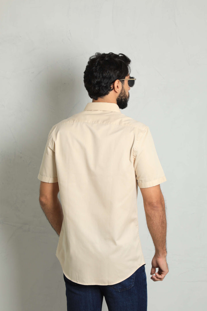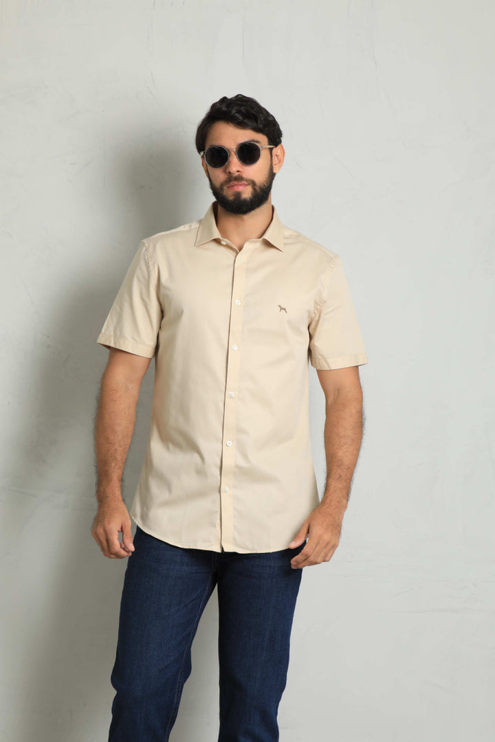 Dale a tu look un toque de distinción con esta camisa de manga corta con acabado satinado, ideal para destacar con estilo. Su tejido en mezcla de algodón logra un balance perfecto entre suavidad, frescura y caída ligera.