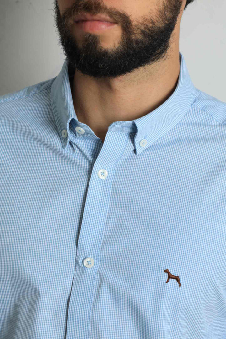Su diseño incluye cuello botón-down, que mantiene su forma y aporta un aire pulido, perfecto tanto para looks urbanos como para ocasiones semi-formales. El patrón de cuadros pequeños brinda un estilo atemporal, fácil de combinar con jeans, chinos o bermudas.