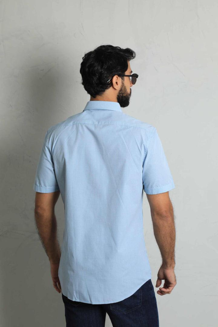 Renueva tu look con esta camisa de manga corta en cuadros pequeños, ideal para un estilo casual con un toque sofisticado. Confeccionada en tejido CVC en mezcla de algodón, combina lo mejor de sus materiales: suavidad, frescura y fácil cuidado.