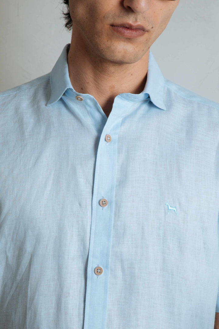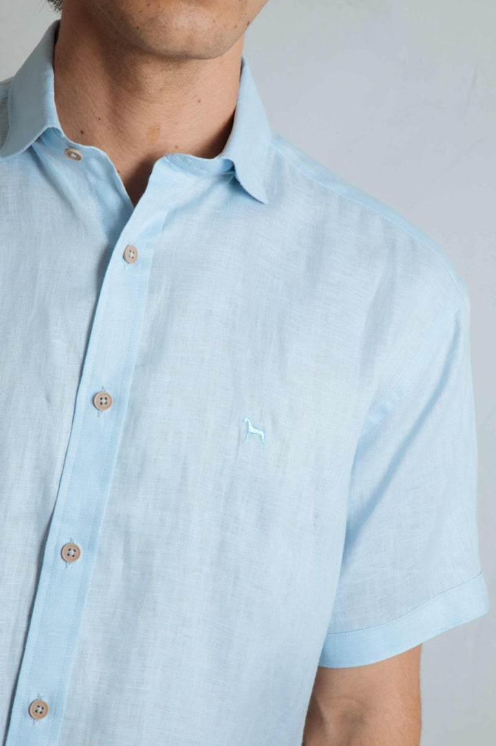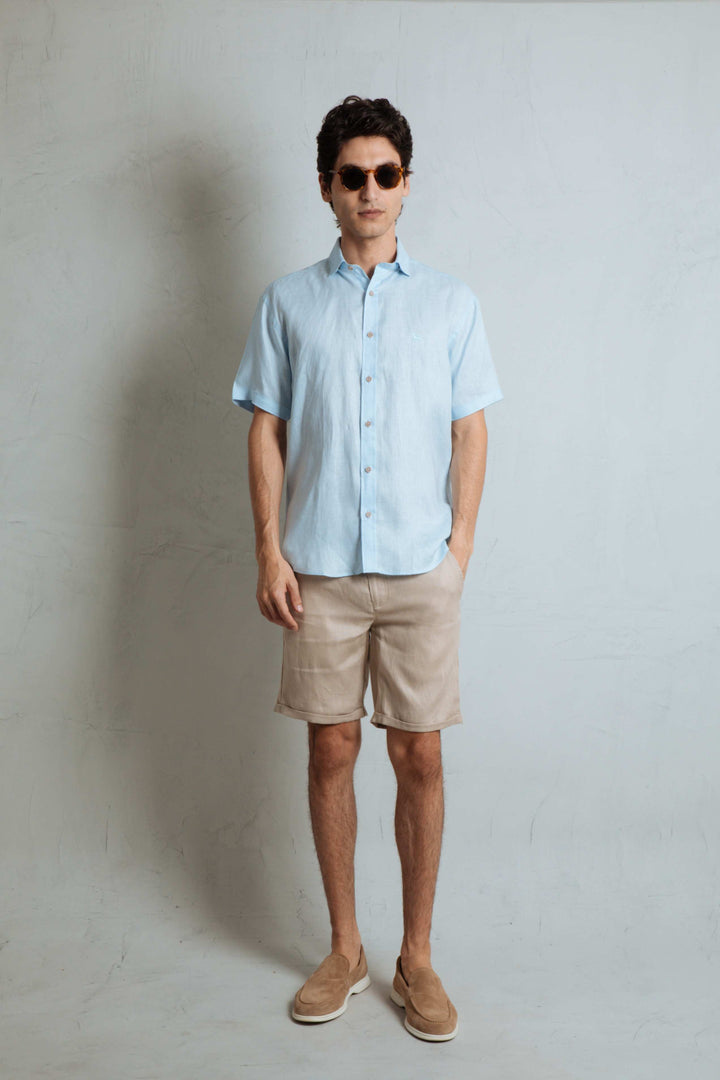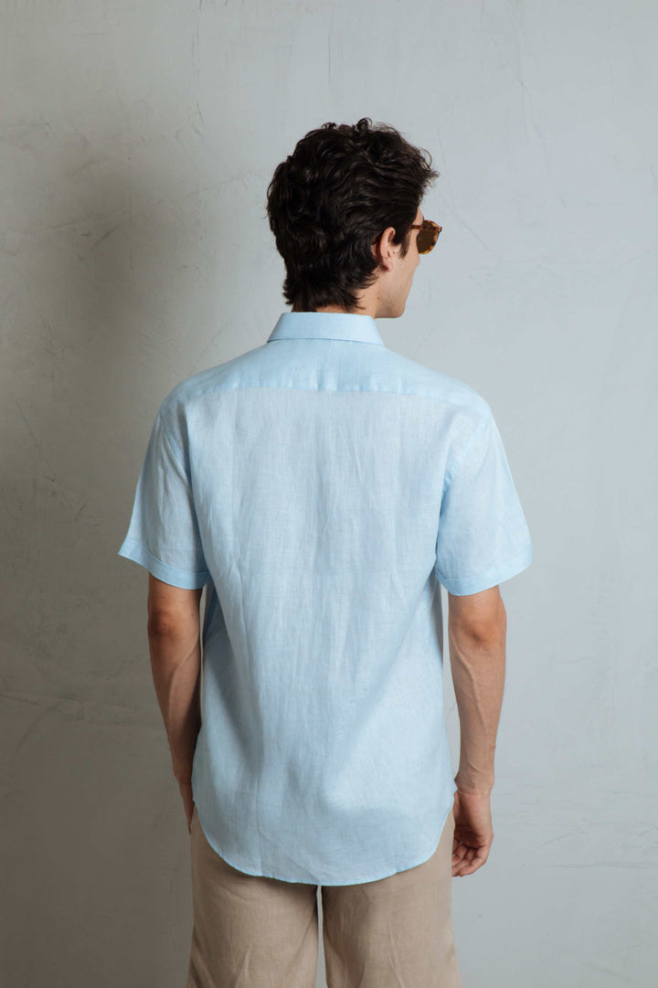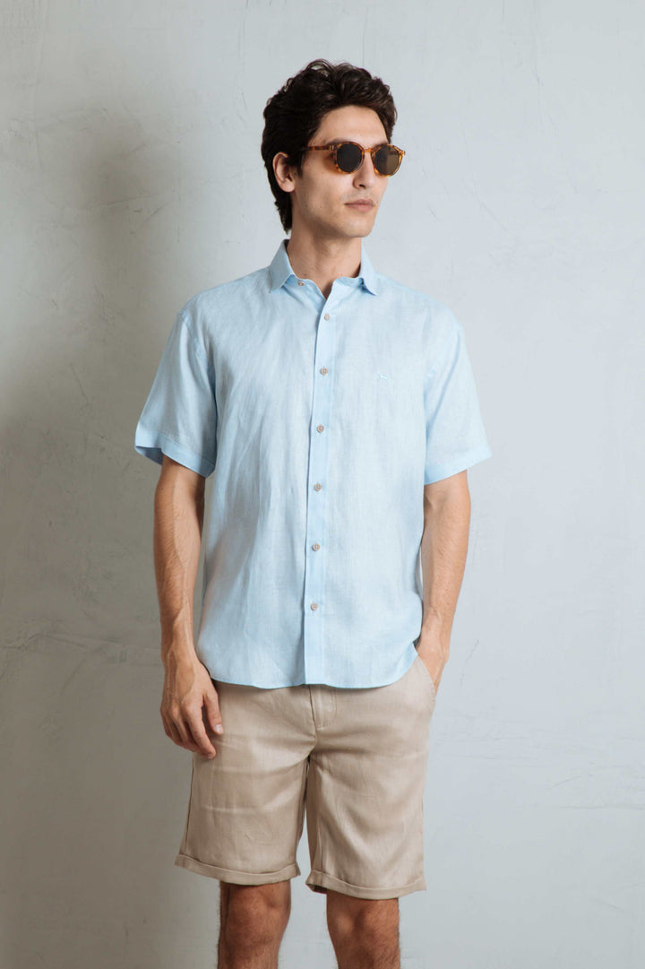 Camisa Manga Corta Lino Baby Blue (Modern Fit)