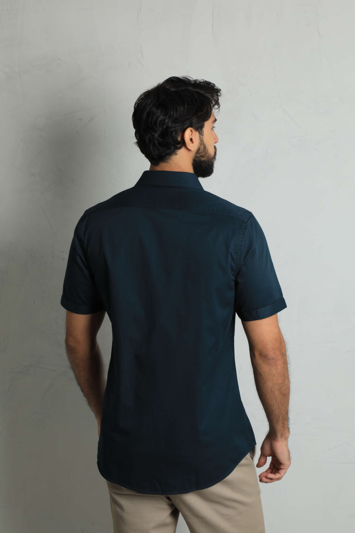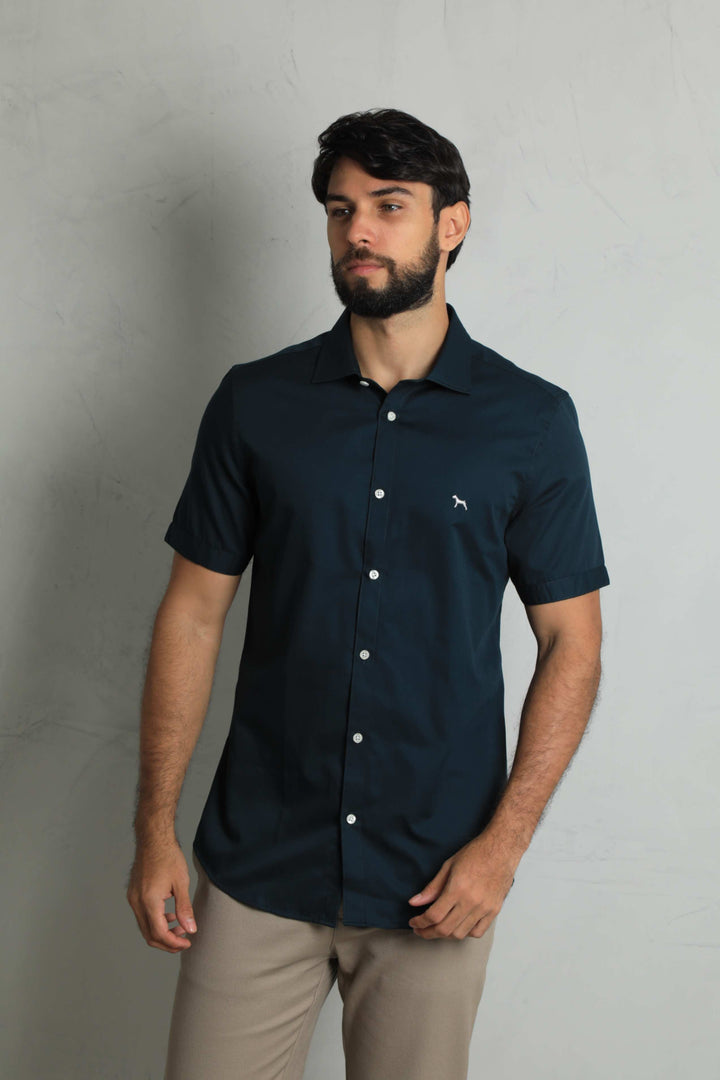 Dale a tu look un toque de distinción con esta camisa de manga corta con acabado satinado, ideal para destacar con estilo. Su tejido en mezcla de algodón logra un balance perfecto entre suavidad, frescura y caída ligera.
