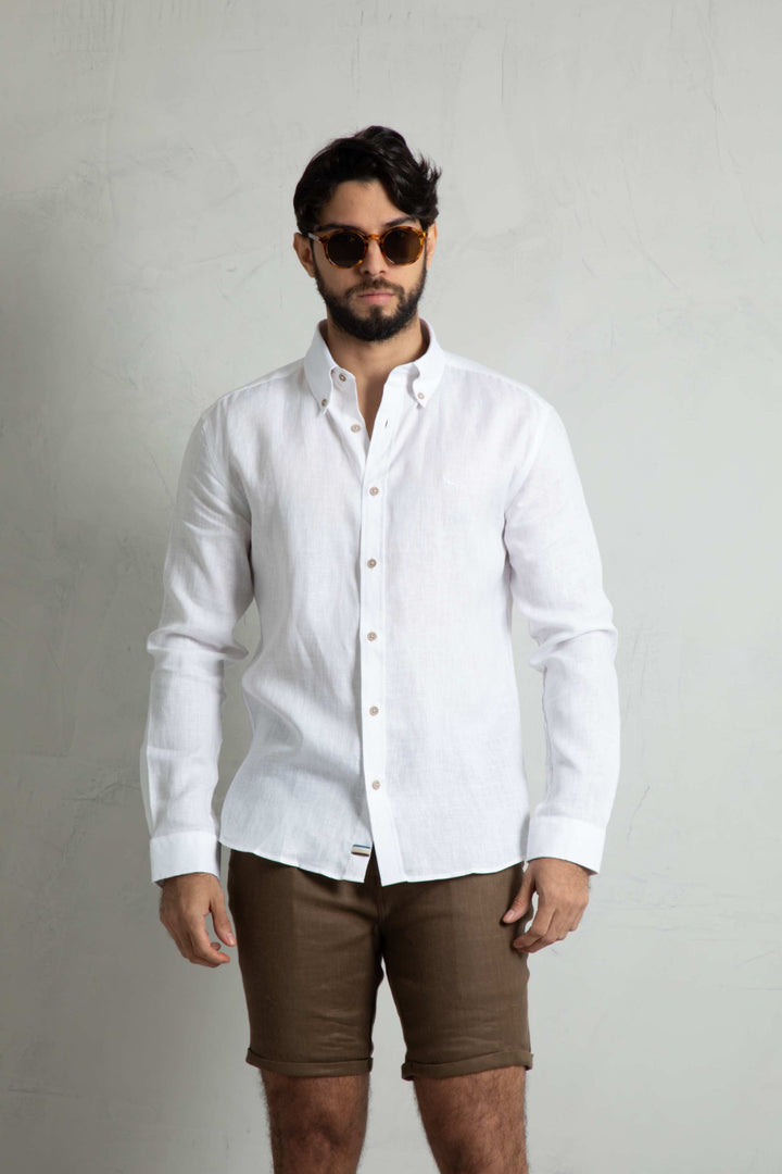 Camisa Manga Larga Lino Blanco (Modern Fit)