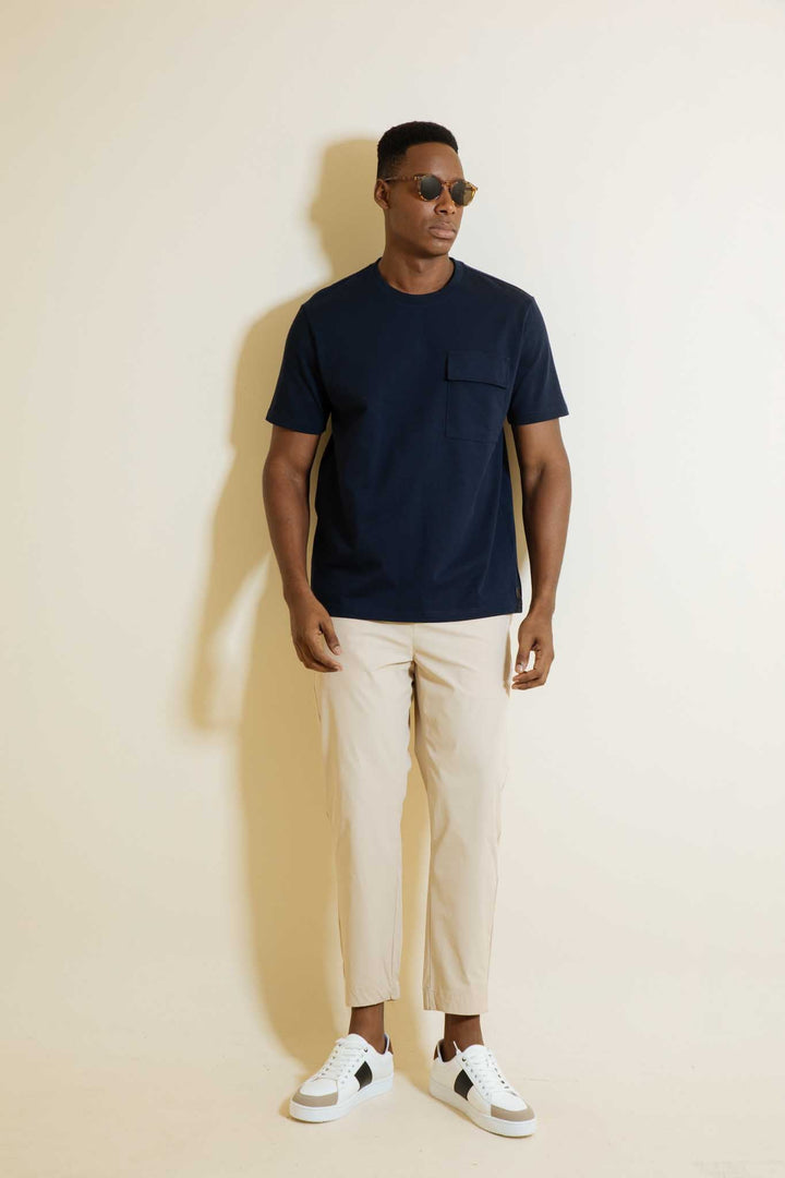 Confeccionado en diversos tejidos (jersey, piqué, doble mercerizado, mezcla de algodón con elastano). Corte casual. Cuello redondo y puños en rib con diseños diferenciales. Manga corta.