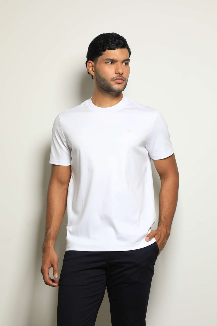Una prenda esencial con un giro sofisticado. Confeccionada en algodón mercerizado, esta camiseta ofrece una textura ultra suave, mayor resistencia y un sutil brillo que realza su apariencia con elegancia.