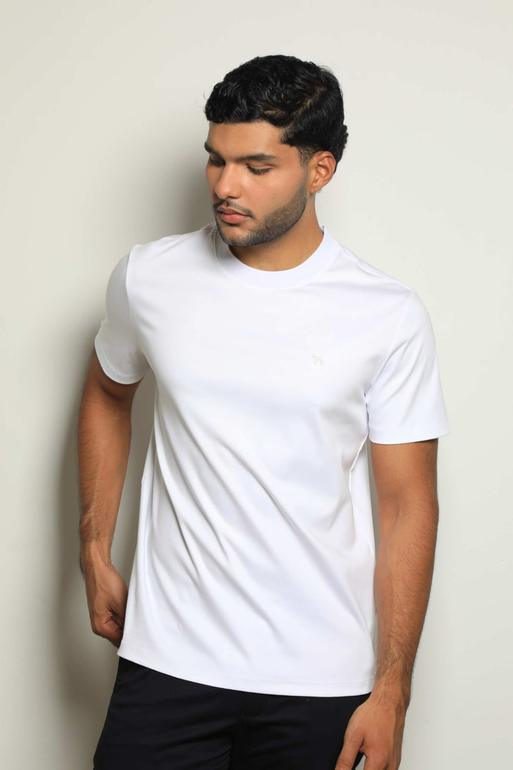 Camiseta Mercerizada Blanco /Detalle Cuello