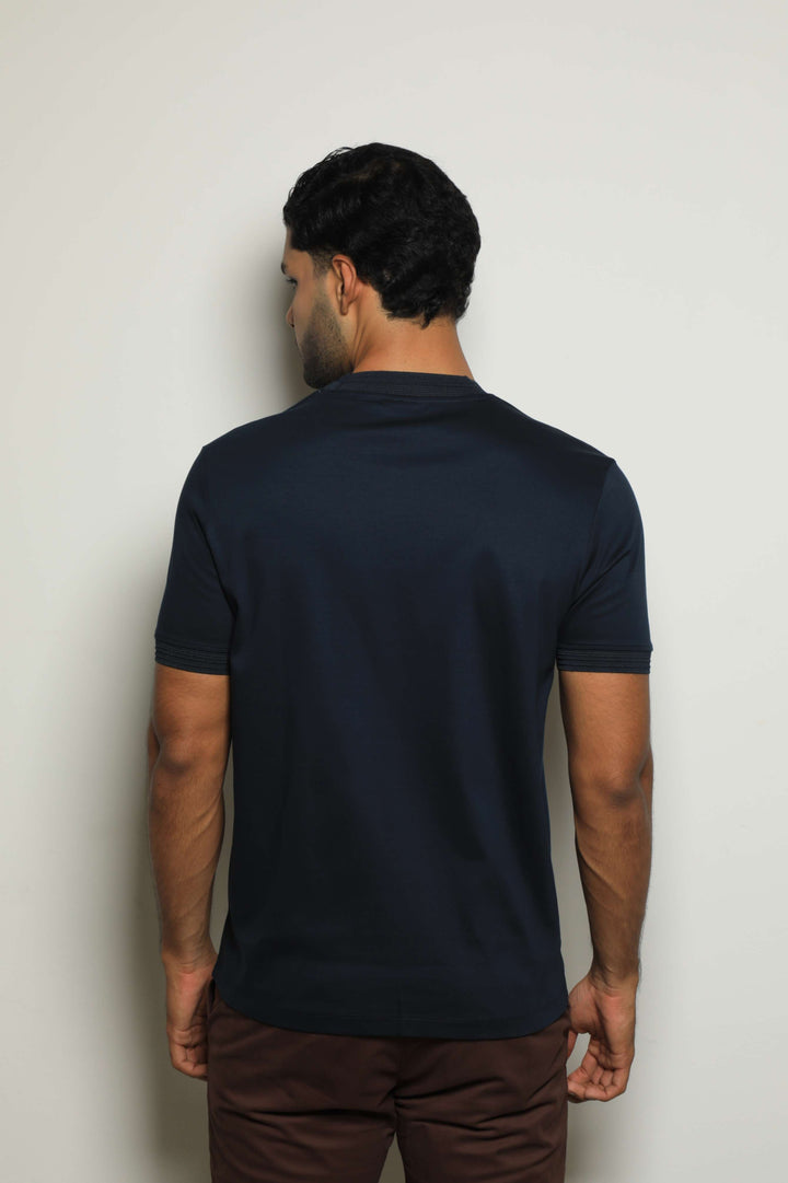 Una prenda esencial con un giro sofisticado. Confeccionada en algodón mercerizado, esta camiseta ofrece una textura ultra suave, mayor resistencia y un sutil brillo que realza su apariencia con elegancia.
