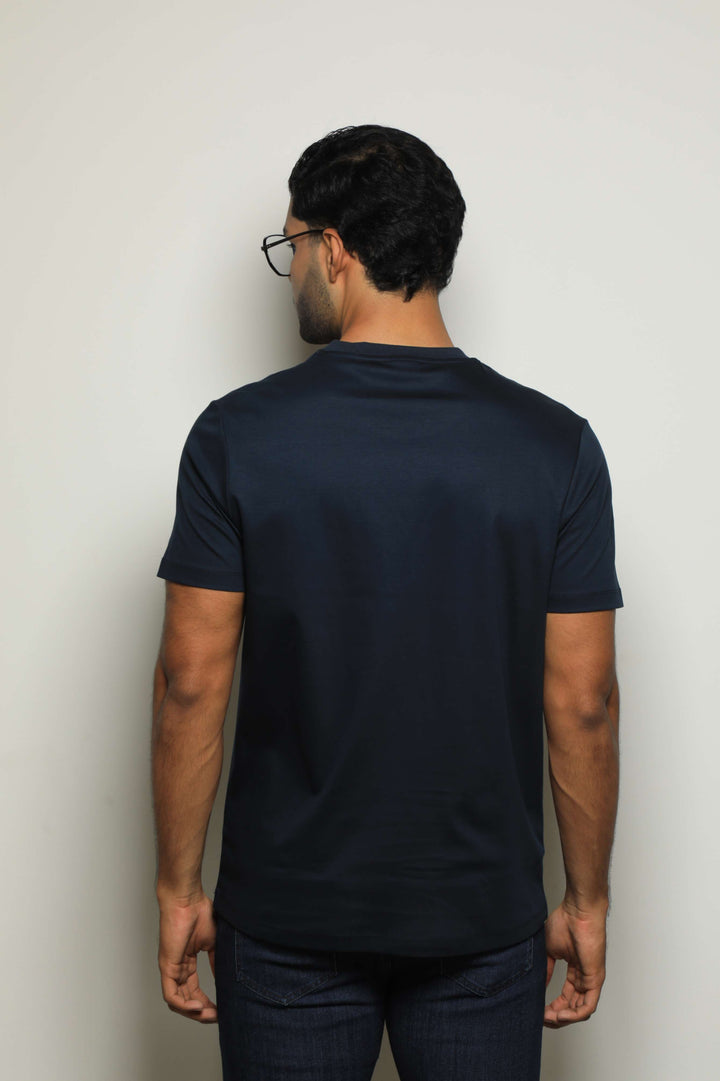 Una prenda esencial con un giro sofisticado. Confeccionada en algodón mercerizado, esta camiseta ofrece una textura ultra suave, mayor resistencia y un sutil brillo que realza su apariencia con elegancia.