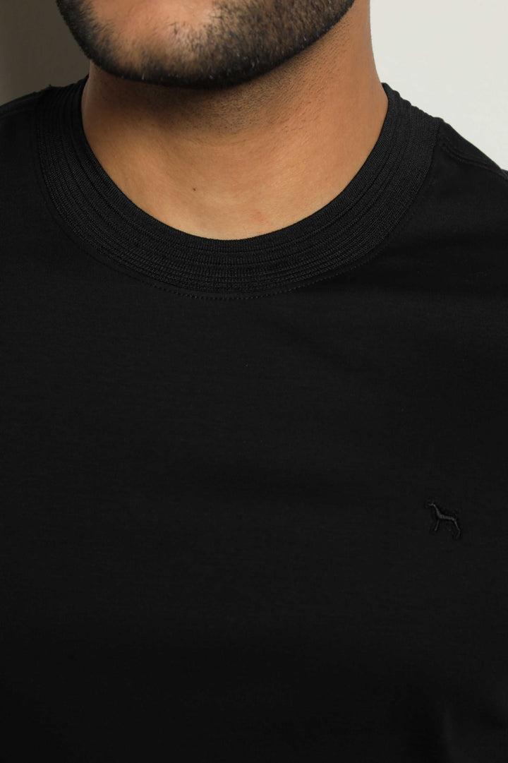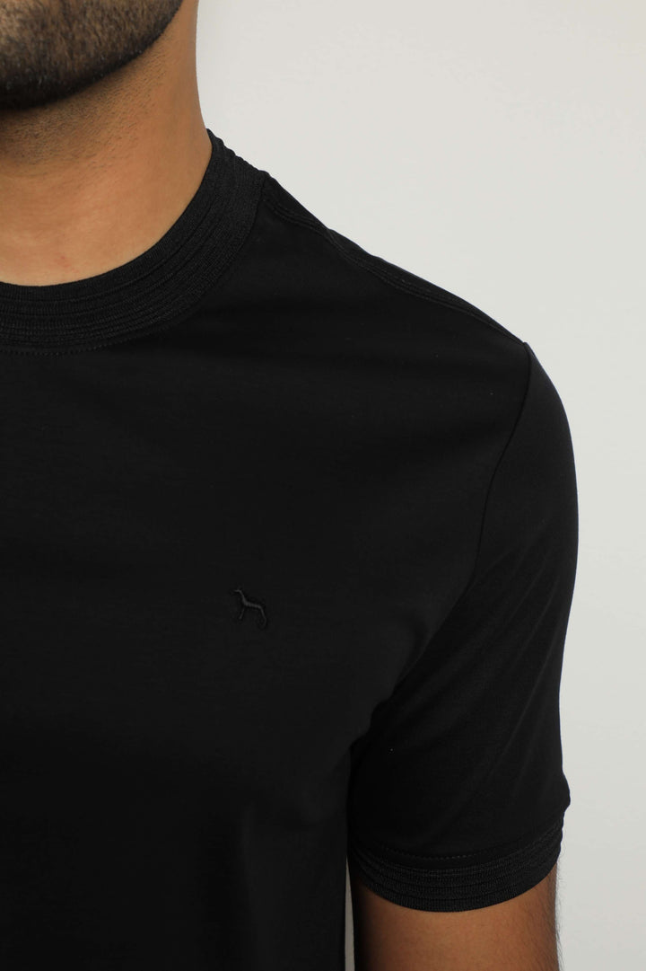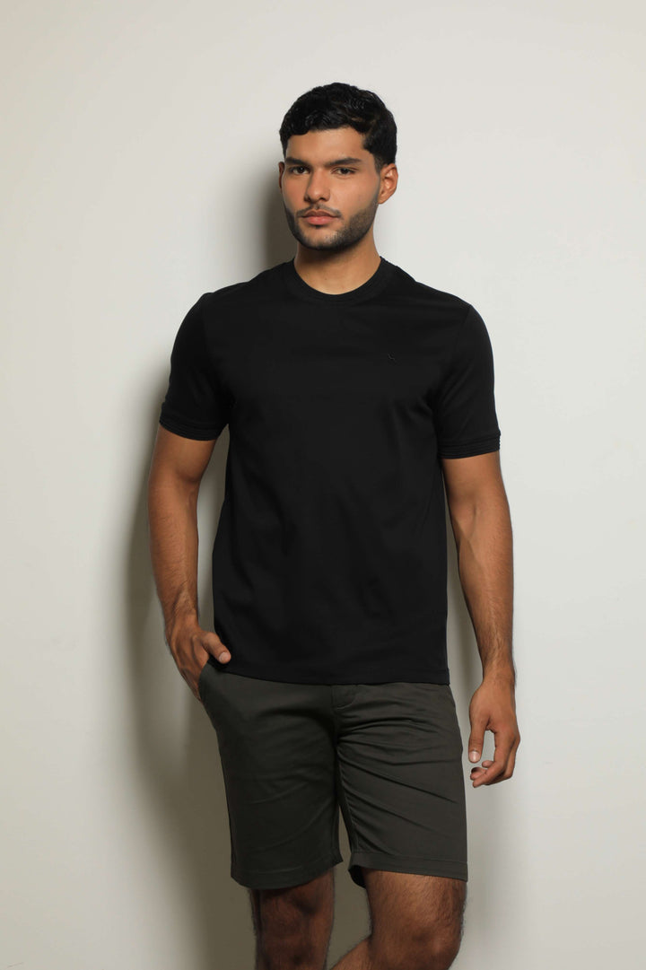 Camiseta Mercerizada Negro/Detalle Cuello-Puños