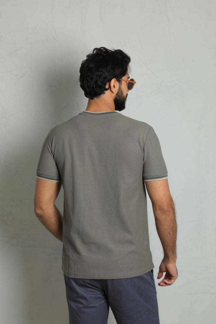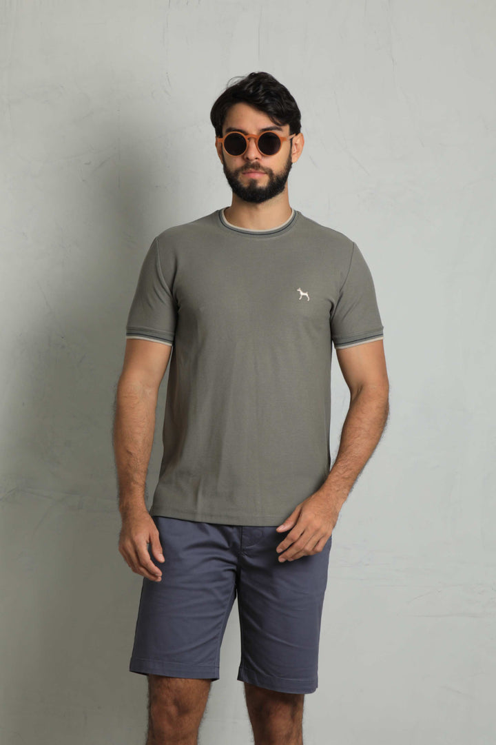 Camiseta Piqué Gris Olivo (Custom Fit)