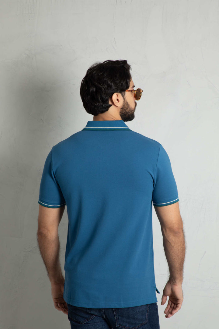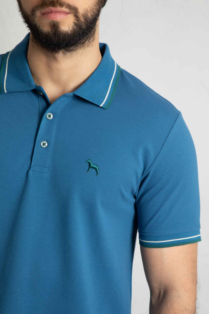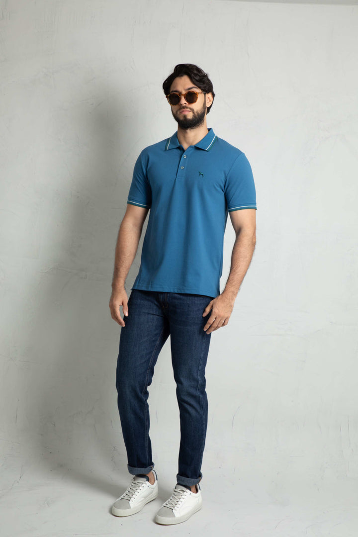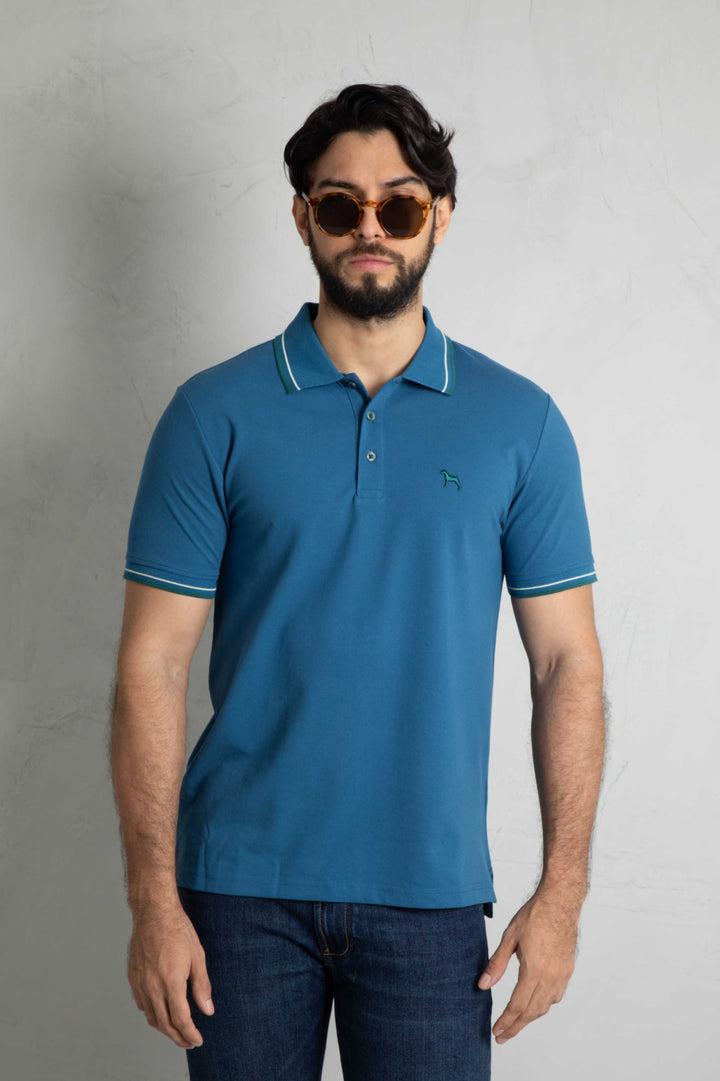 Confeccionado en tejido de piqué con algodón y poliéster. Cierre mediante plaqueta de tres botones. Cuello y puño en rib con tippings en contrastes- manga corta.
