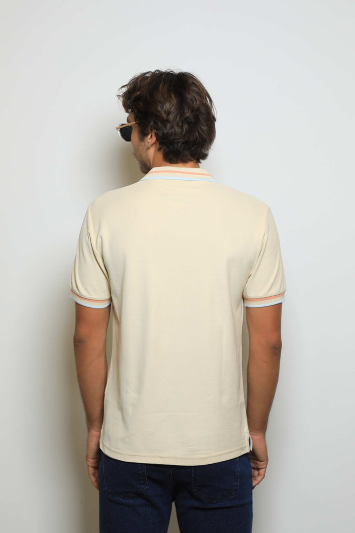 Una prenda que eleva lo básico. Esta polo en mezcla de algodón combina frescura y comodidad con un diseño actual. El cuello y los puños en rib se destacan con detalles tipping en contraste, aportando un toque casual y sofisticado. La plaqueta de tres botones suma versatilidad, perfecta para crear looks casuales con un aire deportivo y cool.