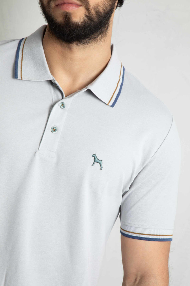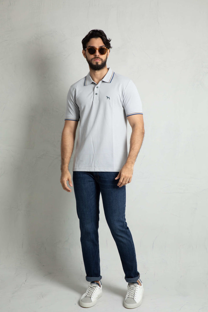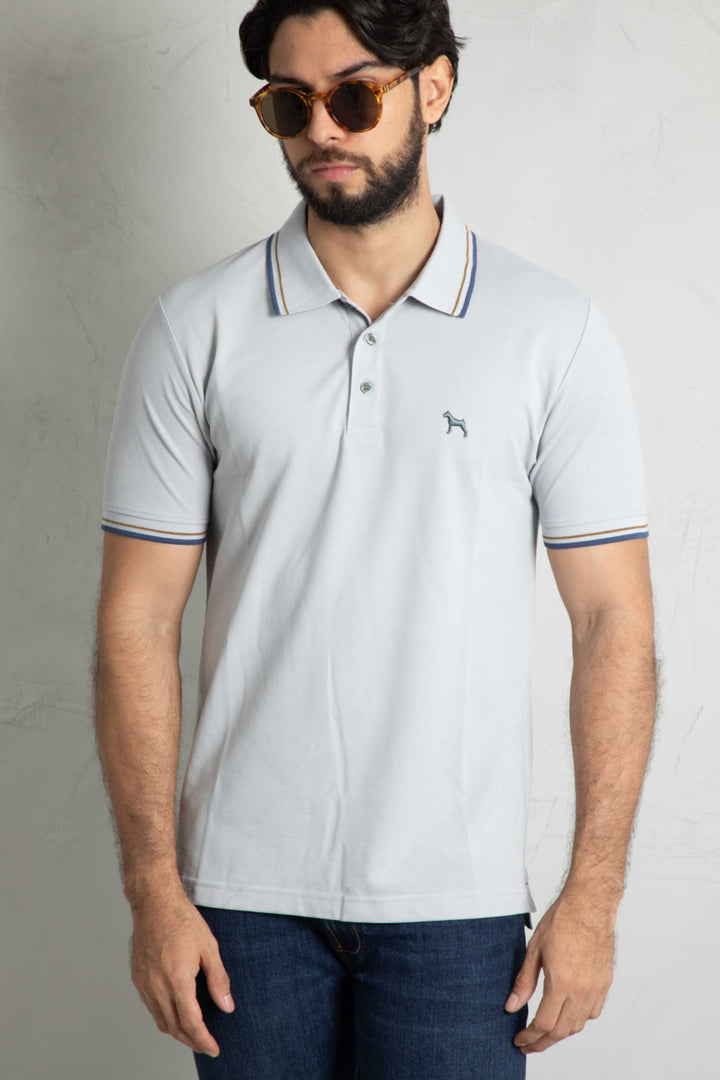 Confeccionado en tejido de piqué con algodón y poliéster. Cierre mediante plaqueta de tres botones. Cuello y puño en rib con tippings en contrastes- manga corta.