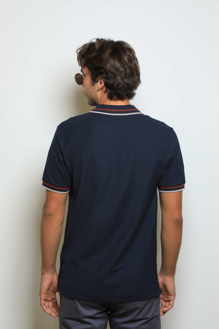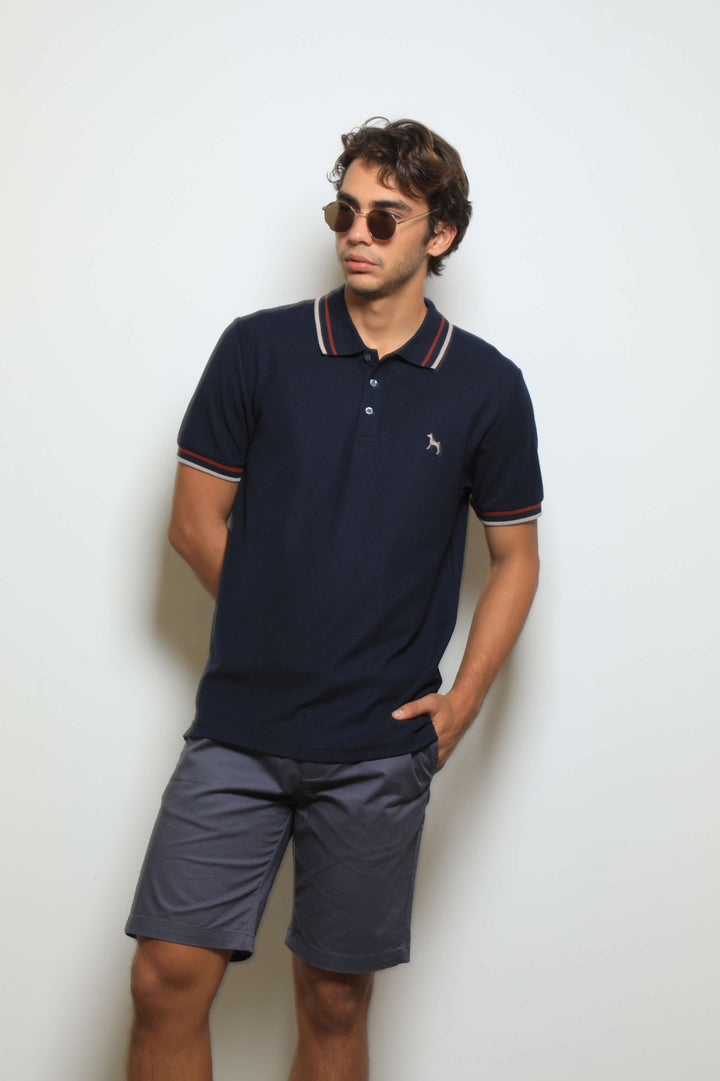 Una prenda que eleva lo básico. Esta polo en mezcla de algodón combina frescura y comodidad con un diseño actual. El cuello y los puños en rib se destacan con detalles tipping en contraste, aportando un toque casual y sofisticado. La plaqueta de tres botones suma versatilidad, perfecta para crear looks casuales con un aire deportivo y cool.