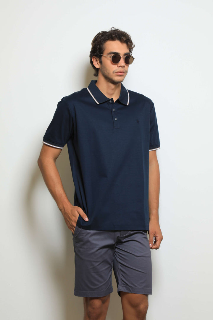 Polo Fashion Mercerizada Navy/Café