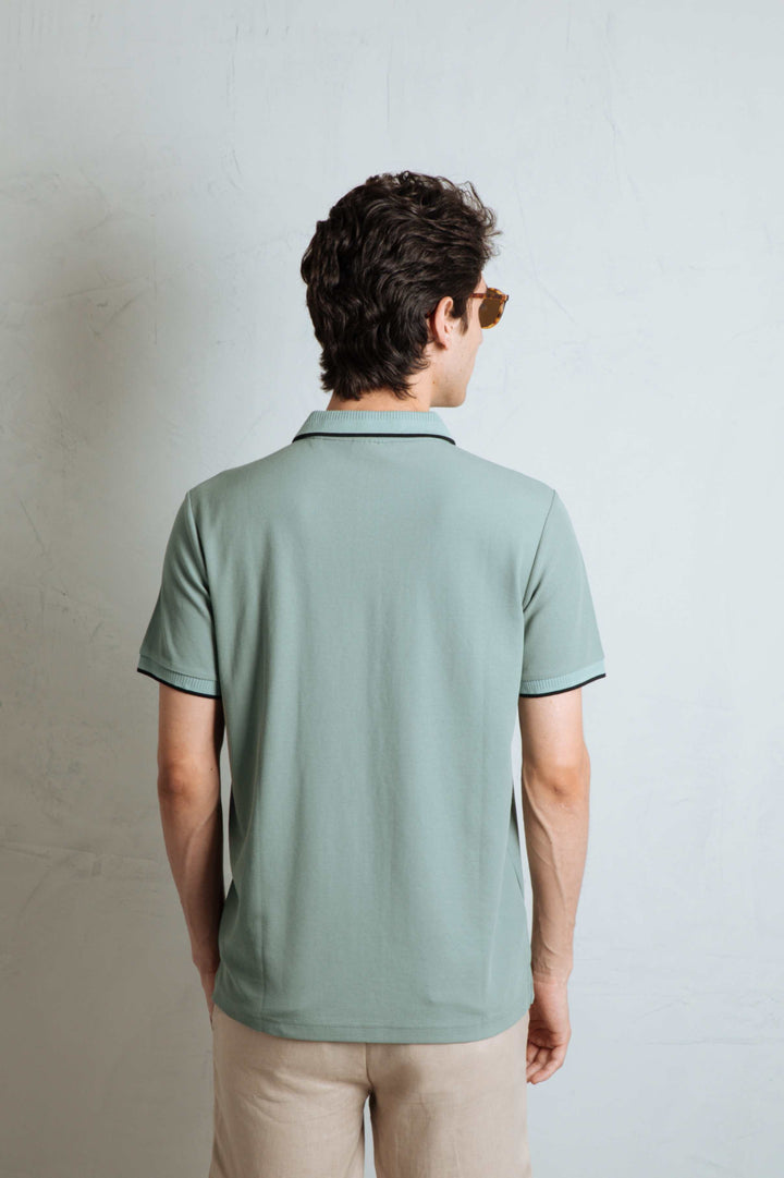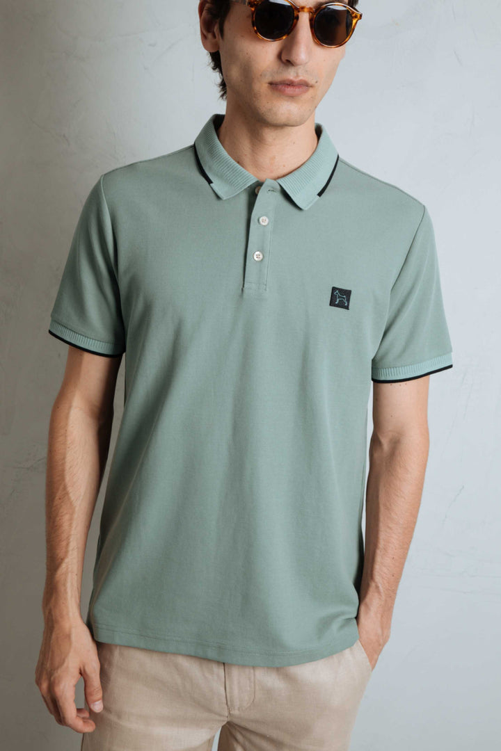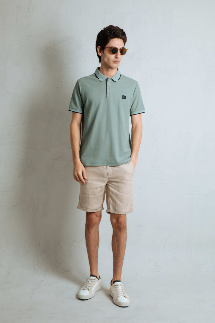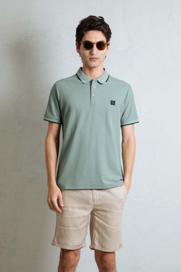 Confeccionado en 60% algodón 40% Poliester. Cierre mediante plaqueta de tres botones. Cuello y puño en rib con diseños diferenciales, logo patch bordado - manga corta.