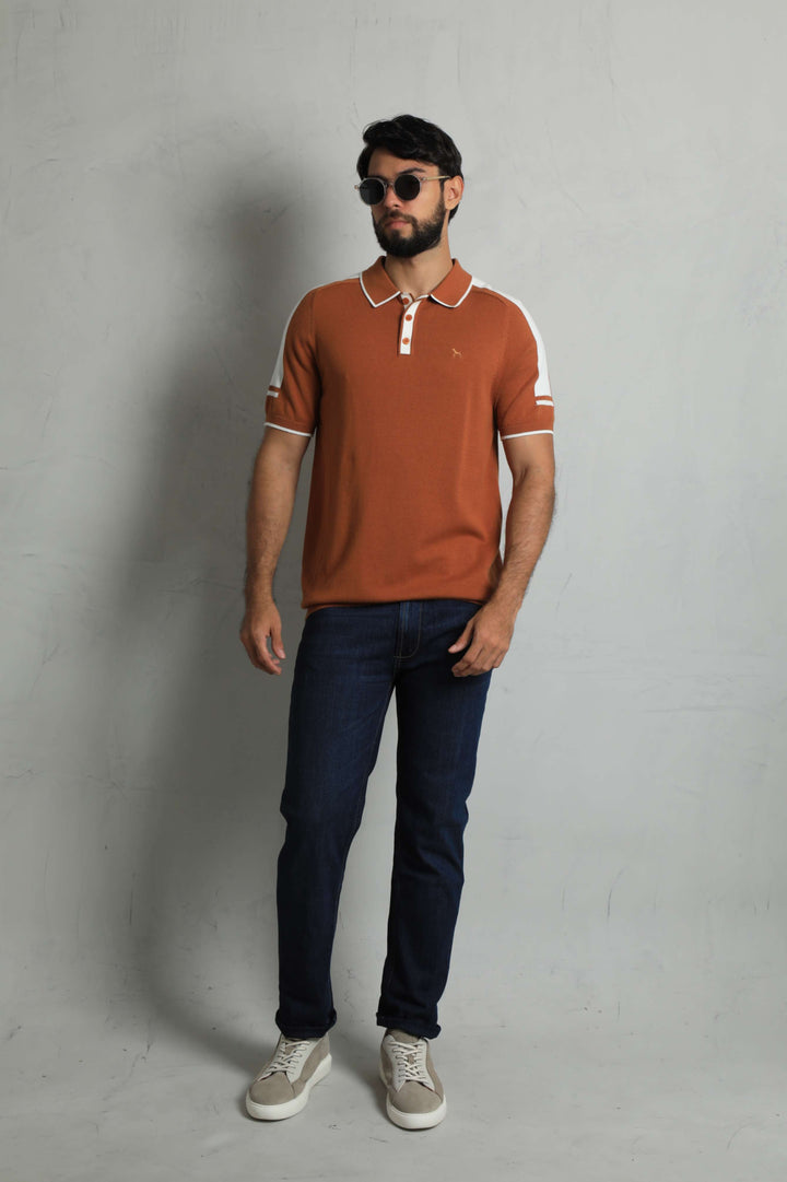 Diseñado para destacar, este suéter tipo polo está confeccionado en 100% algodón, ofreciendo una textura suave, fresca y natural. Su diseño moderno incorpora un bloque de color en contraste en los hombros y una plaqueta clásica de tres botones, creando un look actual con un toque deportivo y urbano.