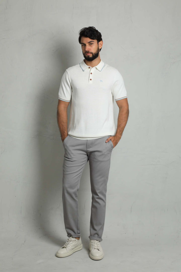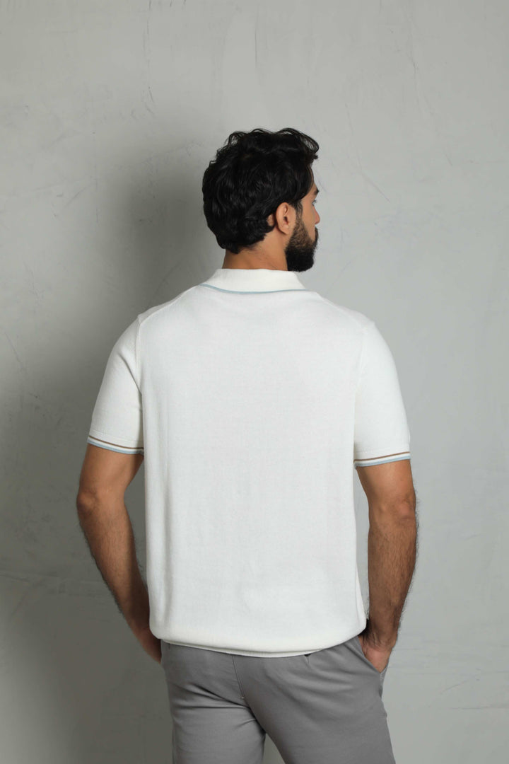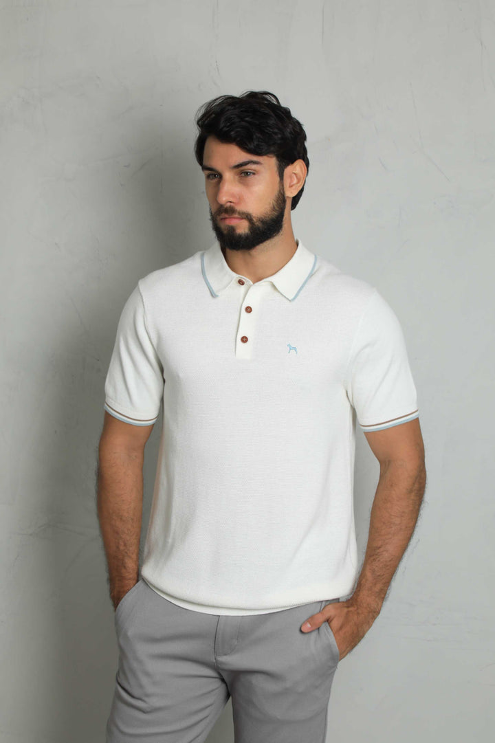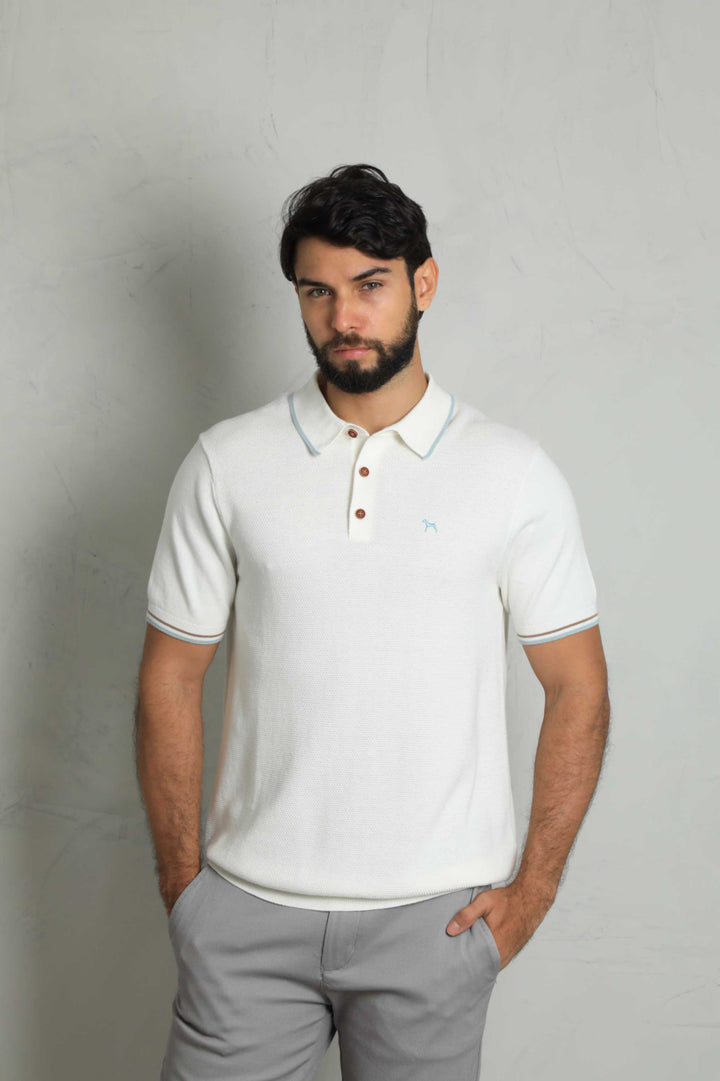 Una prenda que equilibra lo clásico y lo actual. Confeccionado en algodón 100% natural, este suéter tipo polo destaca por su frescura, suavidad y excelente caída. El diseño incorpora tipping en contraste y una plaqueta de tres botones, aportando un look pulido con un giro contemporáneo.